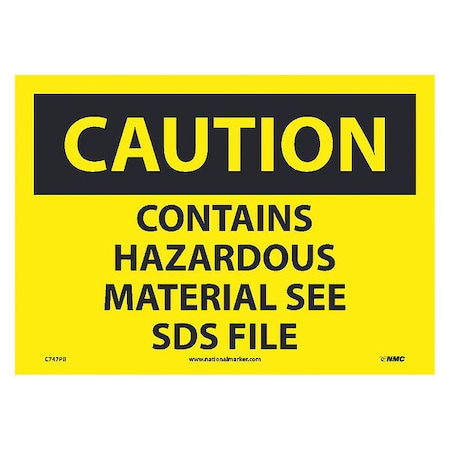 C747PB National Marker Caution Sign, Contains Hazardous Material See Sds File, 10 Inches x 14 Inches Ps Vinyl