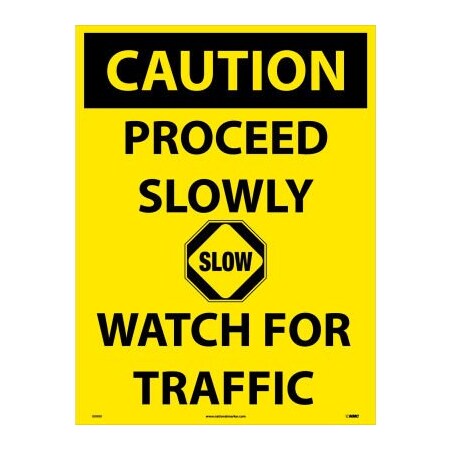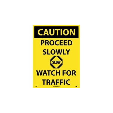 NMC C748F National Marker Caution Sign, Proceed Slowly Watch for Traffic, 32 Inches x 24 Inches, Corrugated Plastic