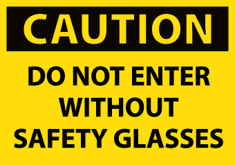 - Header "CAUTION" and Legend "DO NOT ENTER WITHOUT SAFETY GLASSES"