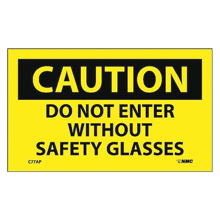 NMC C77AP OSHA Sign, Legend "CAUTION - DO NOT ENTER WITHOUT SAFETY GLASSES", 5" Length x 3" Height, Pressure Sensitive Vinyl, Black on Yellow (Pack of 5)