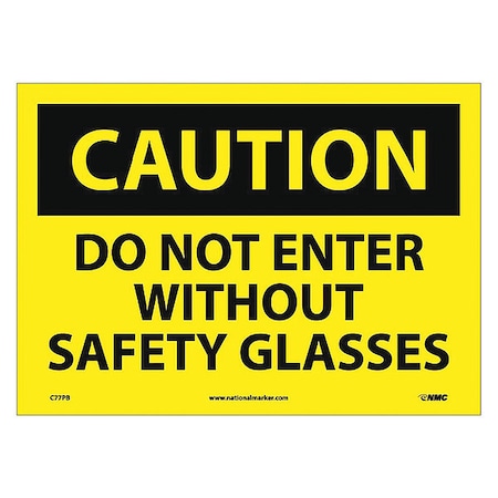 NMC C77PB CAUTION - DO NOT ENTER WITHOUT SAFETY GLASSES Sign - 14in. x 10in. PS Vinyl Caution Signage with Black on Yellow