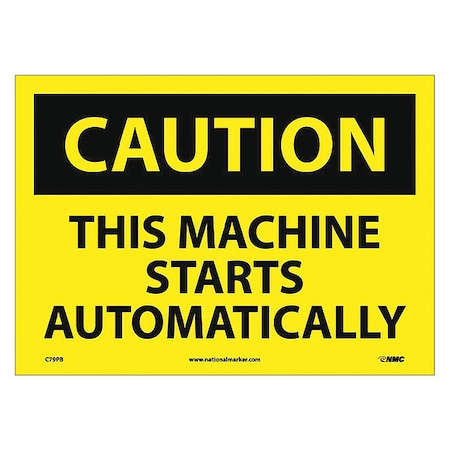 NMC C79PB OSHA Sign, Legend "CAUTION - THIS MACHINE STARTS AUTOMATICALLY", 14" Length x 10" Height, Pressure Sensitive Vinyl, Black on Yellow