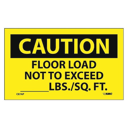 NMC C87AP OSHA Sign, Legend "CAUTION - FLOOR LOAD NOT TO EXCEED _____LBS./SQ.FT.", 5" Length x 3" Height, Pressure Sensitive Vinyl, Black on Yellow (Pack of 5)