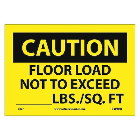 NMC C87P CAUTION - FLOOR LOAD NOT TO EXCEED _____ LBS/SQ. FT - 10 in. x 7 in. PS Vinyl Caution Sign with Yellow/Black Text on Black/Yellow Base