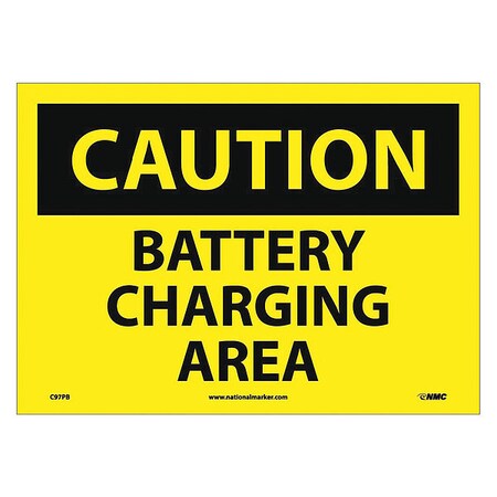 NMC C97PB OSHA Sign, Legend "CAUTION - BATTERY CHARGING AREA", 14" Length x 10" Height, Pressure Sensitive Vinyl, Black on Yellow