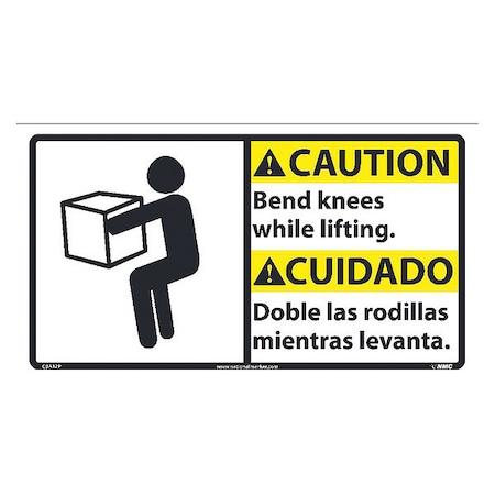 Caution Bend Knees While Lifting Sign - Bilingual, CBA12P