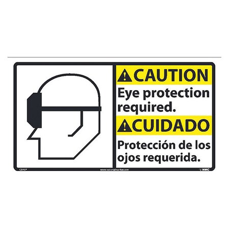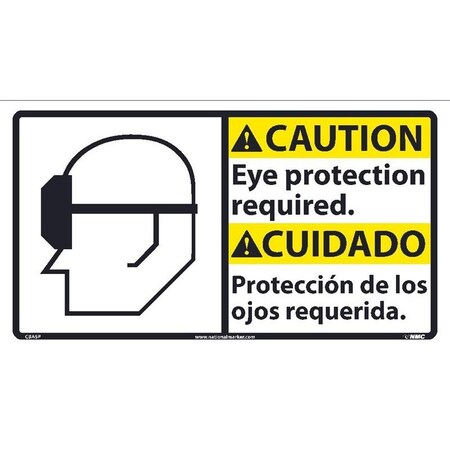 NMC CBA5P Bilingual OSHA Sign, Legend "CAUTION - Eye protection required." with Graphic, 18" Length x 10" Height, Pressure Sensitive Vinyl, Yellow/Black on White