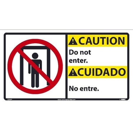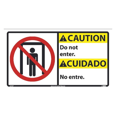 NMC CBA9P Bilingual OSHA Sign, Legend "CAUTION - Do not enter." with Graphic, 18" Length x 10" Height, Pressure Sensitive Vinyl, Red/Yellow/Black on White