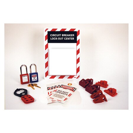 - Specifications: the OSHA polystyrene circuit breaker lock out center is 7 in. wide and 10 in. high. It has white text on a black base