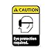 | Feature | Header "CAUTION" and Legend "Eye protection required." with Graphic |