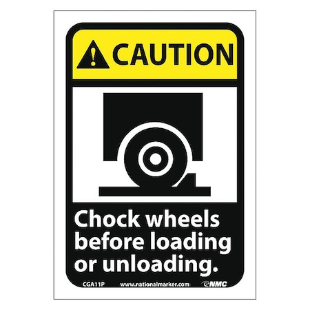 NMC CGA11P 10"x 7"ANSI Sign w/Legend:Caution Chock Wheels Before Loading Or Unloading (w/Graphic), Pack of 50 pcs