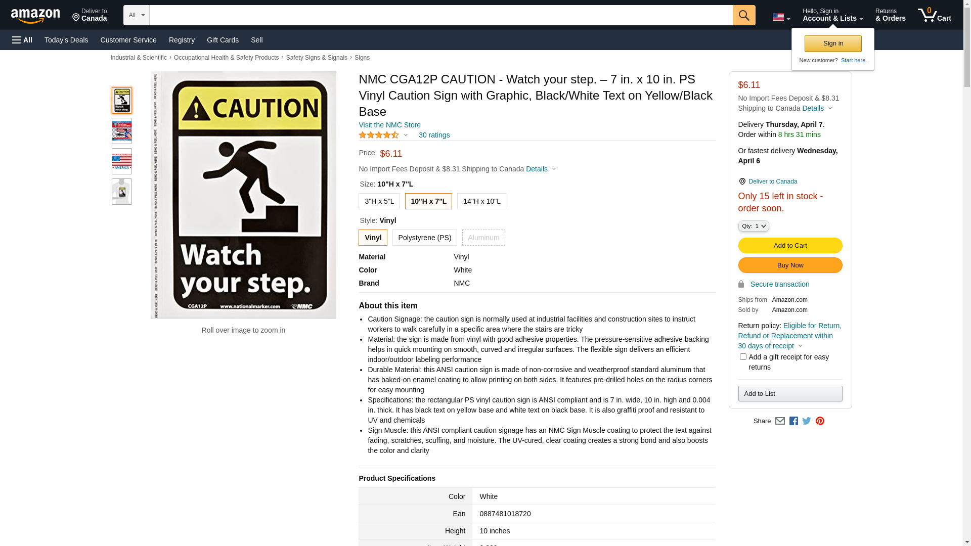 Nmc Ansi-Regulated Vinyl Caution Signs - 10X7" - Caution Watch Your Step