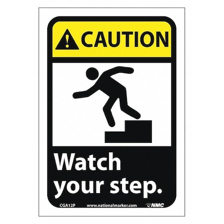 NMC CGA12P 10"x 7"ANSI Sign w/Legend:Caution Watch Your Step (w/Graphic), Pack of 50 pcs