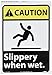 | Feature | Header "CAUTION" and Legend "Slippery when wet." with Graphic |