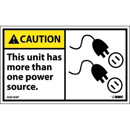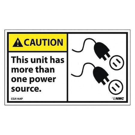 NMC CGA16AP OSHA Sign, Legend "CAUTION - This unit has more than one power source." with Graphic, 5" Length x 3" Height, Pressure Sensitive Vinyl, Yellow/Black on White (Pack of 5)