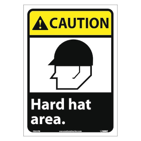 NMC CGA1PB CAUTION - Hard hat area. – 10 in. x 14 in. Pressure Sensitive Vinyl Caution Sign with Graphic, Black/White Text on Yellow/Black Base