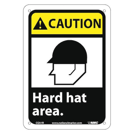 NMC CGA1R CAUTION - Hard hat area. – 7 in. x 10 in. Rigid Plastic Caution Sign with Graphic, Black/White Text on Yellow/Black Base