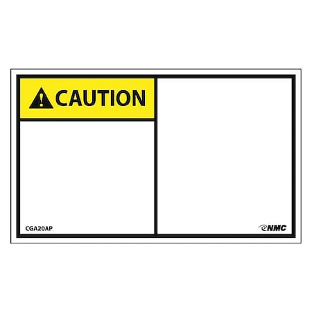 NMC CGA20AP OSHA Sign, Legend "CAUTION", 5" Length x 3" Height, Pressure Sensitive Vinyl, Yellow/Black on White (Pack of 5)