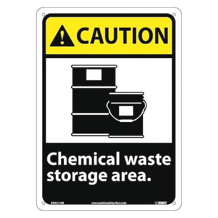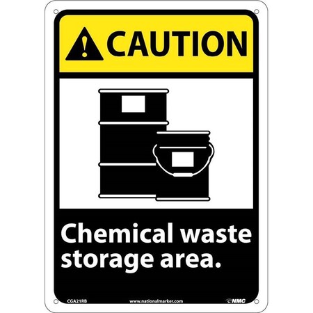 NMC CGA21AB OSHA Sign, Legend "CAUTION - Chemical waste storage area." with Graphic, 10" Length x 14" Height, Aluminum, Yellow/Black on White