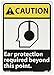 | Feature | Header "CAUTION" and Legend "Ear protection required beyond this point." with Graphic |