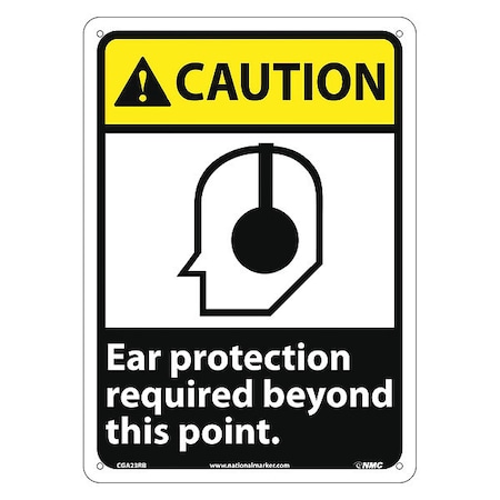 NMC CGA23RB CAUTION - Ear protection required beyond this point. – 10 in. x 14 in. PS Vinyl Caution Sign with Graphic
