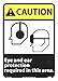| Feature | Header "CAUTION" and Legend "Eye and ear protection required in this area." with Graphic |