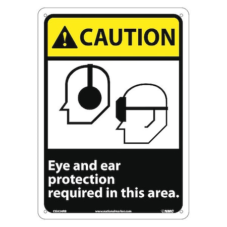 NMC CGA24RB CAUTION – Eye and ear protection required in this area. – 10 in. x 14 in. Rigid Plastic Caution Sign with Graphic