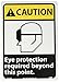| Feature | Header "CAUTION" and Legend "Eye protection required beyond this point." with Graphic |