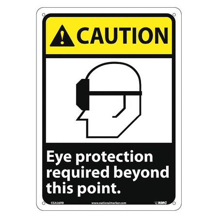 NMC CGA26RB CAUTION – Eye protection required beyond this point. – 10 in. x 14 in. Rigid Plastic Caution Sign with Graphic, Black/White Text on Yellow/Black Base
