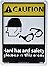 | Feature | Header "CAUTION" and Legend "Hard hat and safety glasses in this area." with Graphic |