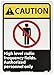 | Feature | Header "CAUTION" and Legend "High level radio frequency fields authorized personnel only." with Graphic |