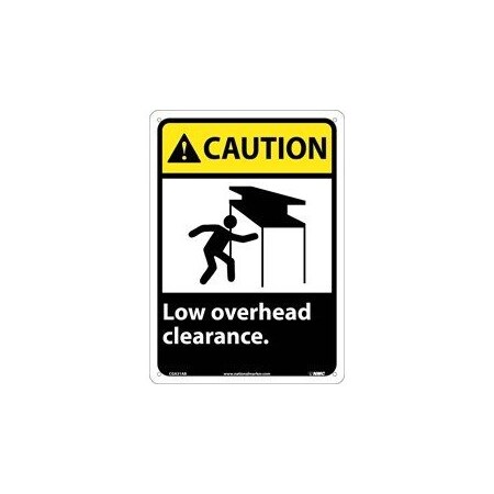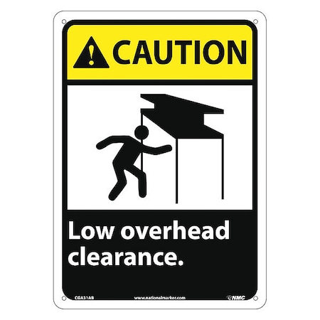 NMC CGA31AB OSHA Sign, Legend "CAUTION - Low overhead clearance." with Graphic, 10" Length x 14" Height, Aluminum, Yellow/Black on White