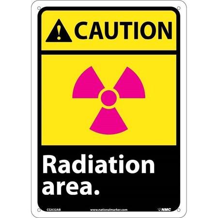 NMC CGA32PB OSHA Sign, Legend "CAUTION - Radiation area." with Graphic, 10" Length x 14" Height, Pressure Sensitive Vinyl, Pink/Yellow/Black on White