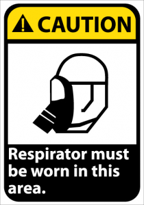 | Feature | Header "CAUTION" and Legend "Respirator must be worn in this area." with Graphic |
