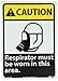 | Feature | Header "CAUTION" and Legend "Respirator must be worn in this area." with Graphic |