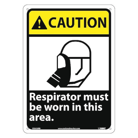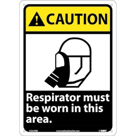NMC CGA33RB OSHA Sign, Legend "CAUTION - Respirator must be worn in this area." with Graphic, 10" Length x 14" Height, Rigid Plastic, Yellow/Black on White