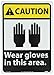 | Feature | Header "CAUTION" and Legend "Wear gloves in this area." with Graphic |