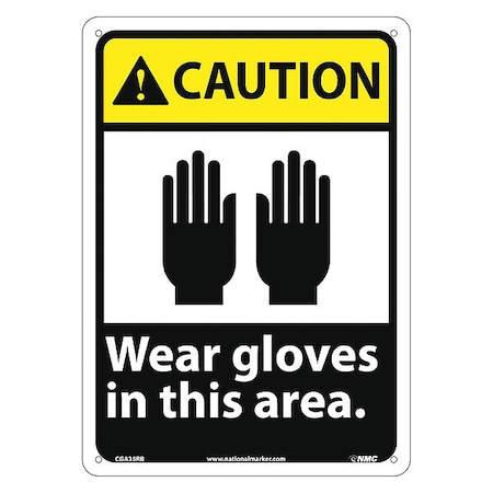 NMC CGA35RB CAUTION – Wear gloves in this area. – 10 in. x 14 in. Rigid Plastic Caution Sign with Graphic, Black/White Text on Yellow/Black Base