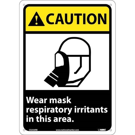 NMC CGA36AB CAUTION – Wear mask – respiratory irritants in this area. – 10 in. x 14 in. Standard Aluminum Caution Sign