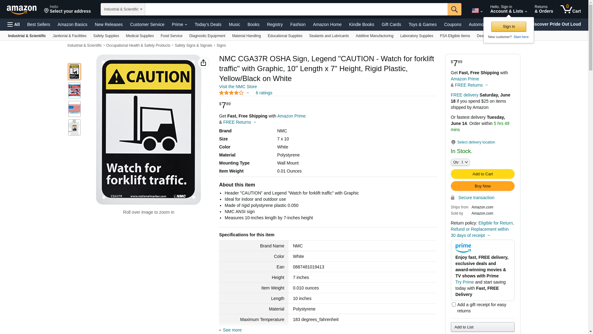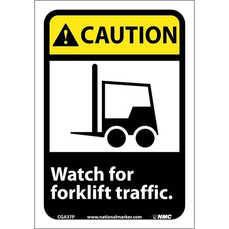NMC CGA37R 7"x 10"ANSI Sign w/Legend:Caution Watch For Forklift Traffic, Pack of 50 pcs