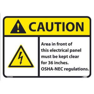 - High Visibility: the legend “Caution - Area In Front Of This Electrical Panel Must Be Kept Clear For 36 Inches. Osha-Nec Regulations.” is printed in bold and legible text to ensure better readability
