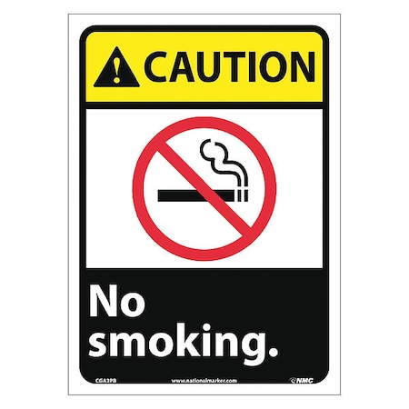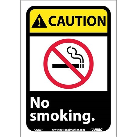 NMC CGA3PB CAUTION - NO SMOKING Sign - 14 in. x 10 in., Black Text on Yellow, PS Vinyl Caution Sign with Graphics