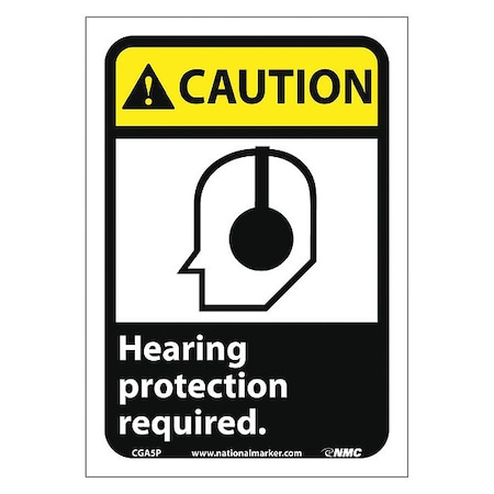NMC CGA5P 10"x 7"ANSI Sign w/Legend:Caution Hearing Protection Required (w/Graphic), Pack of 50 pcs
