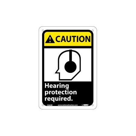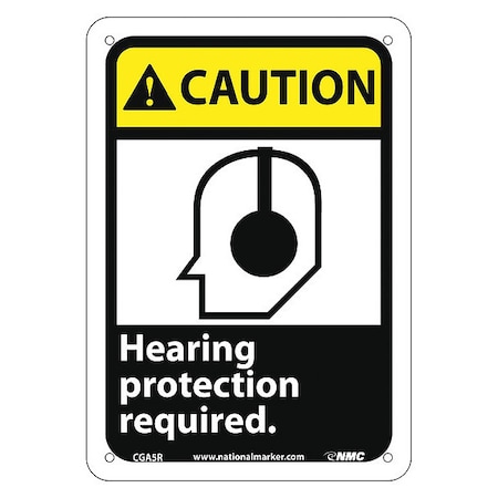 NMC CGA5R CAUTION – Hearing protection required. – 7 in. x 10 in. Rigid Plastic Caution Sign with Graphic, Black/White Text on Yellow/Black Base
