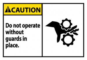 | Feature | Header "CAUTION" and Legend "Do not operate without guards in place." with Graphic |