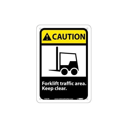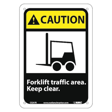 NMC CGA7R OSHA Sign, Legend "CAUTION - Forklift traffic area. Keep clear." with Graphic, 7" Length x 10" Height, Rigid Plastic, Yellow/Black on White