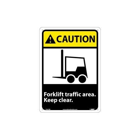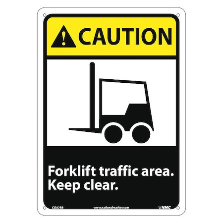 NMC CGA7RB OSHA Sign, Legend "CAUTION - Forklift traffic area. Keep clear." with Graphic, 10" Length x 14" Height, Rigid Plastic, Yellow/Black on White