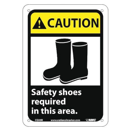 NMC CGA9R CAUTION – Safety shoes required in this area. – 7 in. x 10 in. Rigid Plastic Caution Sign with Graphic