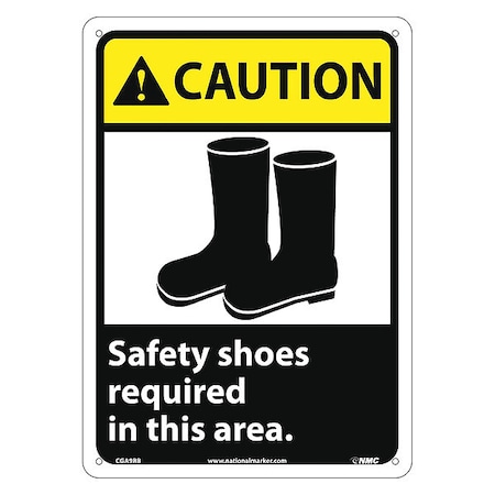 NMC CGA9RB CAUTION – Safety shoes required in this area. – 10 in. x 14 in. Rigid Plastic Caution Sign with Graphic