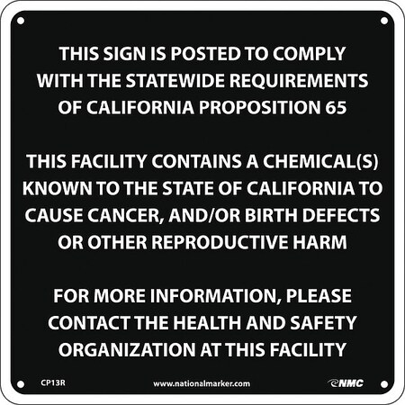 CP13R National Marker California Prop 65, Danger Chemical Hazard Sign - This Facility Contains a Chemical, 10 Inches x 10 Inches Rigid Plastic